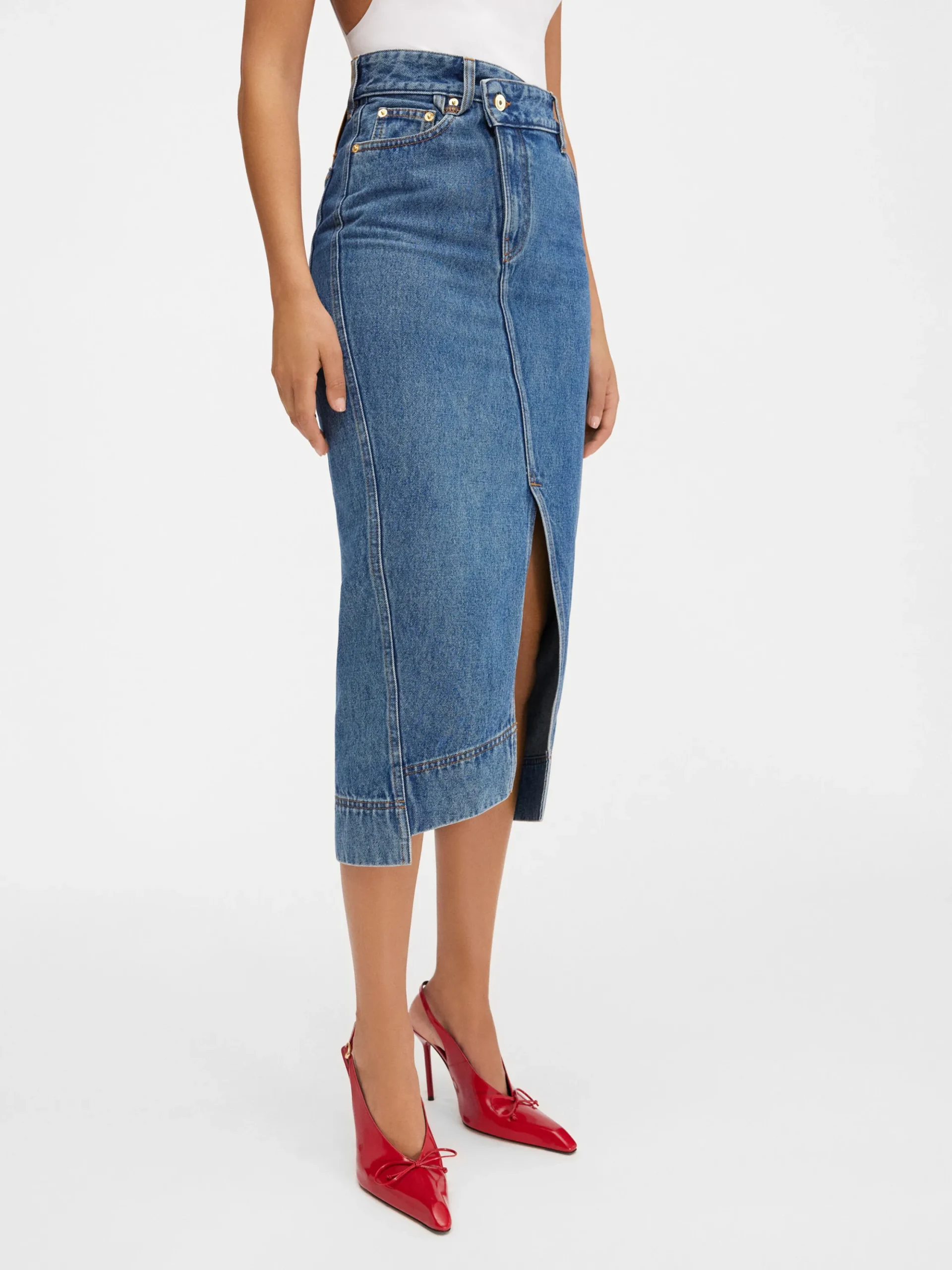 Asymmetrische denim rok.