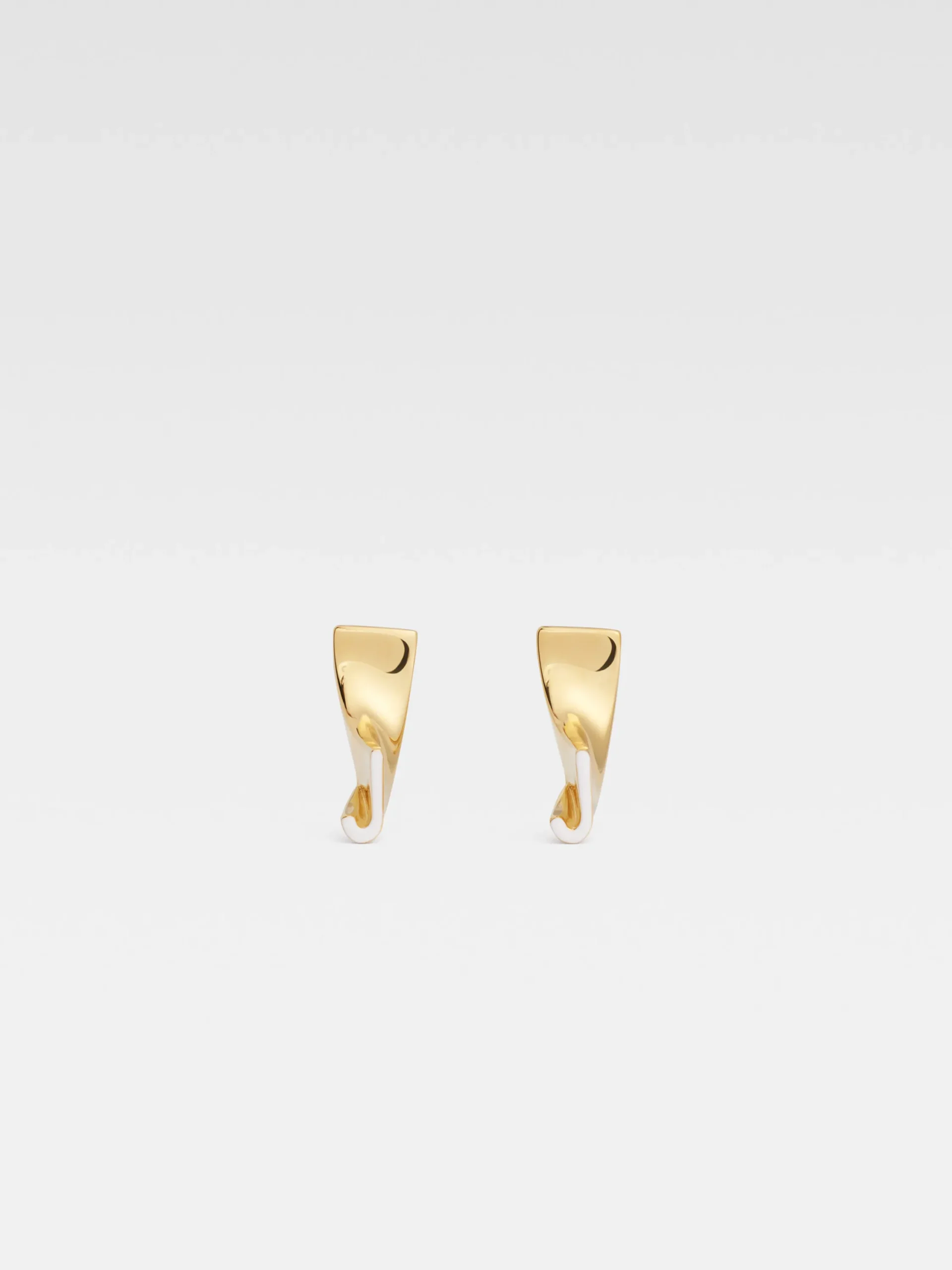 Asymmetrische oorbellen van verguld messing met wit glazuur